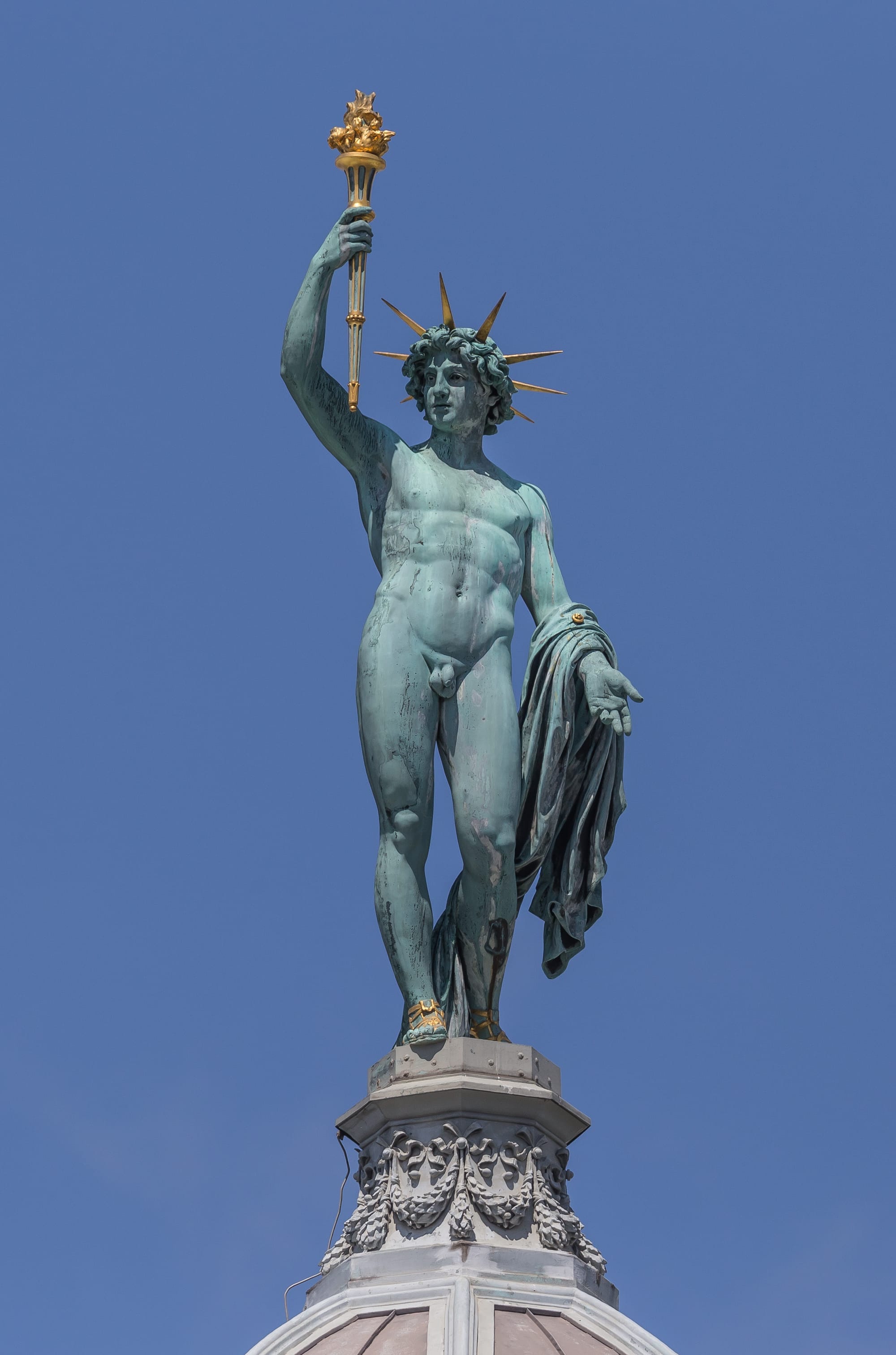 Selbst ist der Mann, der Sonnengott, ich glaubs nicht, das ist er ja wirklich selbst! Guten Tag, den Tag verdankt er nämlich mir, ich muß ihn bloß ab und zu daran erinnern. Die Körper werden fallen, in meiner Nähe, sie werden daliegen auf meinem eigenen Feld, das aus Sand besteht und auf Sand besteht, unbedingt, bald alles Sand, ich trockne das Feld aus, damit Platz für einen schönen Sandstrand geschaffen wird. Die Säulen unsrer Häuser sind die Söhne, neuerdings jedoch fließt das Haar von den Köpfen der Frauen, unter der Last zittert die Erde, ein wenig Stoff nur, schon sind sie da, die Körper. Der Stoff dient dem Erkennen, ob hier und dort nicht ein paar Gewichte zuviel an den Menschen hängen, er dient nicht der Selbsterkenntnis, daß man sowas einfach nicht mehr anzieht in dem Alter, selbst wenn man sich damit unter Wasser aufhält. Mit diesem Körper, mit diesem Kopf, mit diesem Gesicht, da trauen Sie sich heraus? Ich bringe das an den Tag, und die Opfer werden mir gebracht, nein, ich habe sie selbst hergebracht, ich habe sie hergelockt nach langer Zeit der Dunkelheit und der Gesichts-Leichenbinden. In dieser Form erscheinen sie vor mir, die trauen sich was!, erst noch mal nach Hause und nichts zu sich nehmen, aber auch wirklich gar nichts, bis sie sich nicht mehr fürchten müssen, andren zu begegnen! Doch wovor sollten sie sich schämen?, alle dürfen ja doch alles. Die Sonne ist, daß alle alles dürfen, weil man sie dann gut sieht. Ich werfe mich drüber, ich werfe mich drauf: Erste! Ich bin in der Hitze, die ich selbst erzeuge, wie praktisch! Ich werfe mich auf alles, was der Fall ist, bis es selber fällt. Und Tod erdulden sowieso alle, ob ich sie von oben herab betrachte oder nicht, sie sind geweiht, sie sind meine Totenopfer, ich sorge dafür, daß man sie gut sieht und daß sie gut aussehen, wie sie sich mir opfern in aller Helligkeit, die ich zusammenraffen kann, jeden Tag wieder, jeden Tag immer wieder, immer wieder aufs neue. Gehe ich Ihnen schon ab? Das macht nichts, ich gehe sowieso irgendwann mal ab, schauen Sie in Ihren Kalender, was die Erde so macht und wann, dann wissen Sie sofort die genaue Zeit. Nicht daß Sie, wie die zwei Deppen neulich, Vater plus Kind, um sieben Uhr abends zu einer Tour aufbrechen und um acht von der Bergwacht, die immer achtgibt, gerettet werden müssen! Ich gehe ab, bin aber nicht weg, ich bin woanders, ich komme wieder, alle Tage, keine Frage. Manchmal sieht man mich, manchmal nicht.